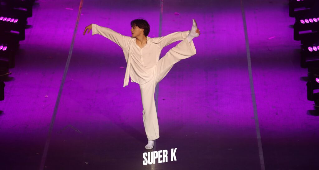 HORI7ON showcased their range through the members’ solo stages. Kim played with acoustic guitar as he serenaded the arena with “YK,” followed by Kyler’s equally charming rendition of “I Think They Call This Love” while handing roses out to the audience. Winston warmed up the mood with his cover of “Off My Face.” Marcus proved his singing and dancing prowess with Rain’s “Rainism,” while Vinci took the ballad route with “Falling.” Reyster stunned with a breathtaking interpretative dance to “Die with a Smile.” Jeromy then switched up the vibe with a hip-hop performance of “No More ?’s” and a unit cover of “Butter” with Winston and Marcus.