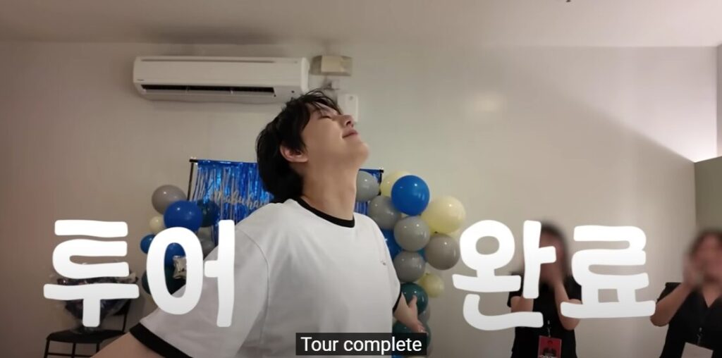 A video played during the first half of the show, featuring him portraying different characters while highlighting key milestones in his career. In the end, a conversation unfolded between two versions of Kyuhyun. His present-day self admitted feeling happy but sometimes scared about the future. The wiser Kyuhyun reassured him: “You’ve done well so far. You’ve lived a harder life than anyone else. Have some faith in the people around you.” He then pointed to the screen directing his younger self’s attention to the fans at the venue. The crowd erupted in cheers, waving their lightsticks in response.